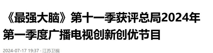《〈最广宽脑〉第十一季获评总局2024年第一季度播送电视改动创优节目》(江苏卫视)