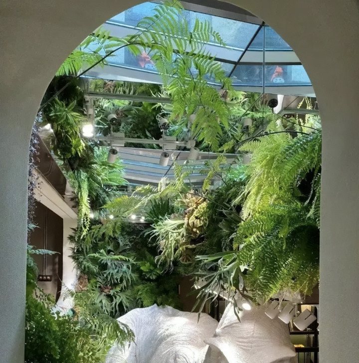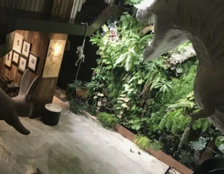 室内还有模拟亚马逊雨林的生态墙。