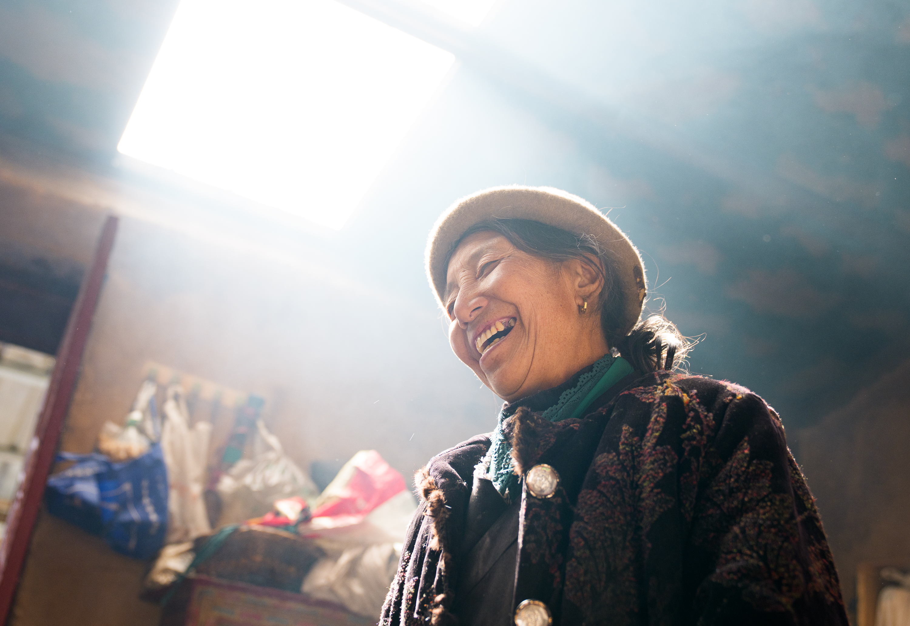 2月6日,卓嘎在玉麦乡的家里陈述生涯的变化。新华社记者 丁增尼达 摄