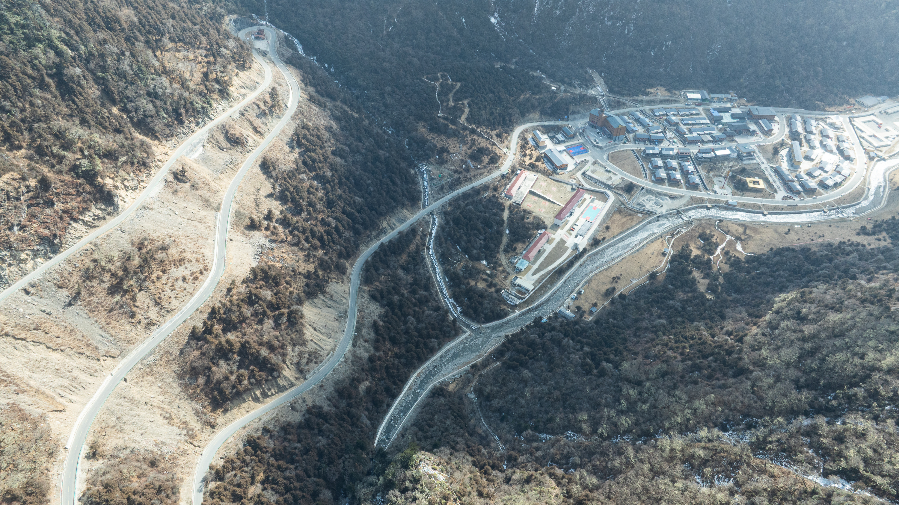 这是2月5日拍摄的玉麦乡及周边公路(无东谈主机相片)。新华社记者 丁增尼达 摄