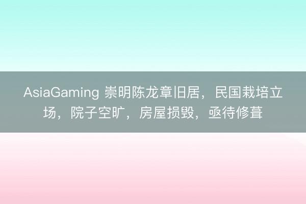 崇明区港西镇双津村1097号,是陈龙章旧居的场合地。 张开剩余61% 透过碎裂的窗户,不错望见院子里狼藉的树木和颓残的窗扇,岁月在这里留住的思路让东谈主既感到惘然AsiaGaming,又不禁生出敬意。 发布于:天津市太阳城娱乐游戏(SunGame)官网...