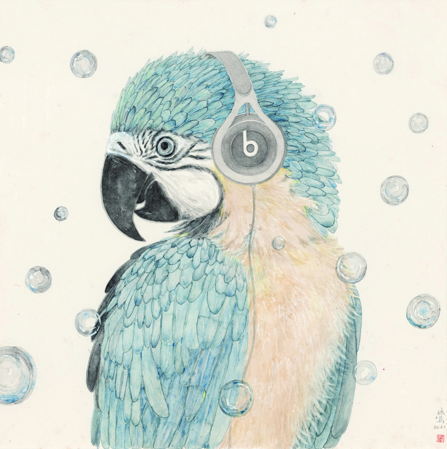 我依然在东谈主物画中进行过一些超现实方针的尝试,但东谈主物造型自身如故相比写实的,还有好多问题需要处置。非凡是新文东谈主画兴起后,不少画家运转尝试东谈主物的变形,而我并莫得快速地找到合适的方法,于是就想“弧线救国”,通过画花鸟去找寻我方的造型章程,让画面能更解放一些。