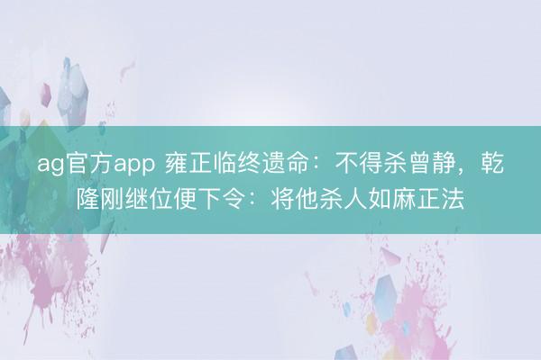 雍正六年(1728年),一桩震荡扫数清朝的惊天大案爆发,鼎新了扫数帝国。 伸开剩余58% 乾隆的决定最终推论,曾静和张熙被判正法刑ag官方app,眷属亦碰到严厉的刑事职守。这一切的背后,究竟避讳着何如的历史复杂性,也曾是一个值得深念念的谜团。 发布于:天津市快乐彩正版app下载官网...