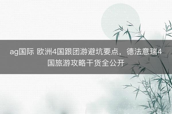 德法意瑞4国跟团游是出境游的热点选拔,但从选团到境外游玩,稍不介意就容易踩坑!这份攻略直击欧洲4国跟团游的中枢避坑要点, 中望外洋旅行社同期全公开四国旅游的实用干货,从选团、行程到破费、打卡,全标的教你避坑不踩雷,玩转德法意瑞! 欧洲4国跟团游中枢避坑要点,全程避坑不踩雷 跟团游的坑大多围聚在选团、行程、破费三大门径,这三大中枢避坑要点直击问题本色,照作念就能躲闪99%的套路,让你的四国之旅全程舒...