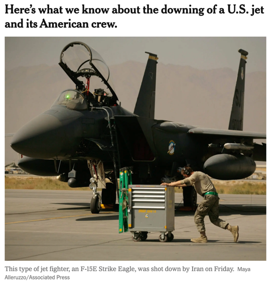 △《纽约时报》报说念,一架好意思军F-15E战机在伊朗西南部被击落,这对特朗普政府来说是一次挫败。