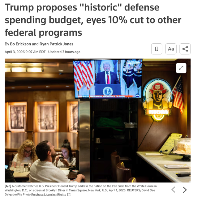 △路透社报说念,特朗普提议“历史性”国防开支预算,但其第一任期时,特朗普曾一度称好意思国军费开支“落拓”。