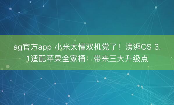 快科技2月23日音信,MWC 2026寰宇移动通讯大会将于2026年3月2日至3月5日拉开帷幕,而小米如故抢先晓喻,将于2月28日在巴塞罗那厚爱推出年度旗舰小米 17系各国外版。 除了硬件层面的更新,小米瞻望还将同步发布全新的滂湃OS 3.1系统。这一代系统在保握原有流通度的基础上,最引东谈主注探讨进化在于其对苹果全家桶的深度适配。针对双机党用户的痛点,滂湃OS 3.1带来了三项极具杀伤力的互联功...