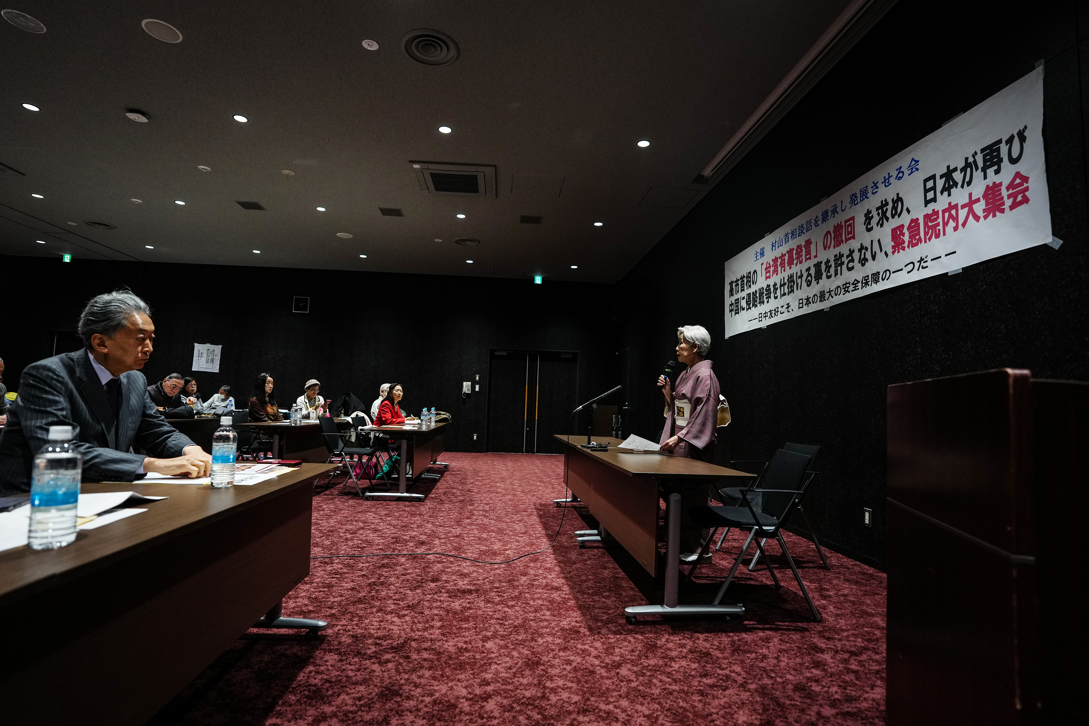 1月29日,在日本东京,日本学者在集中上发言,月旦高市早苗军事彭胀道路。新华社记者贾浩成摄
