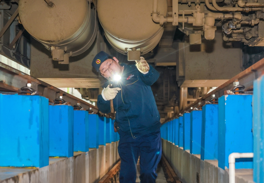 功课东谈主员排查车底隐患、调试电路系统、协同查对建筑参数等,ag国际对列车要津部位一一检查选藏,严把列车安全检会关,看守春运出行路。